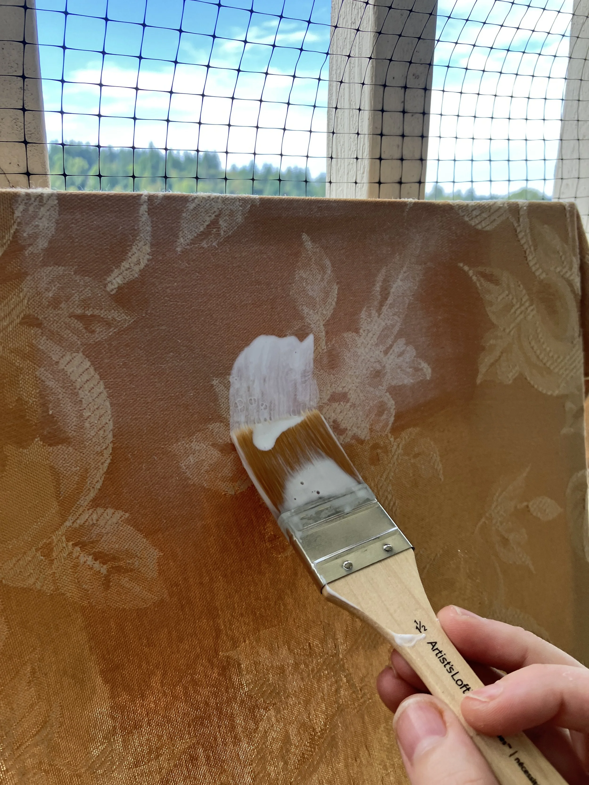 I watered down my first layer of gesso with about 40% water to help it permeate the fibers.