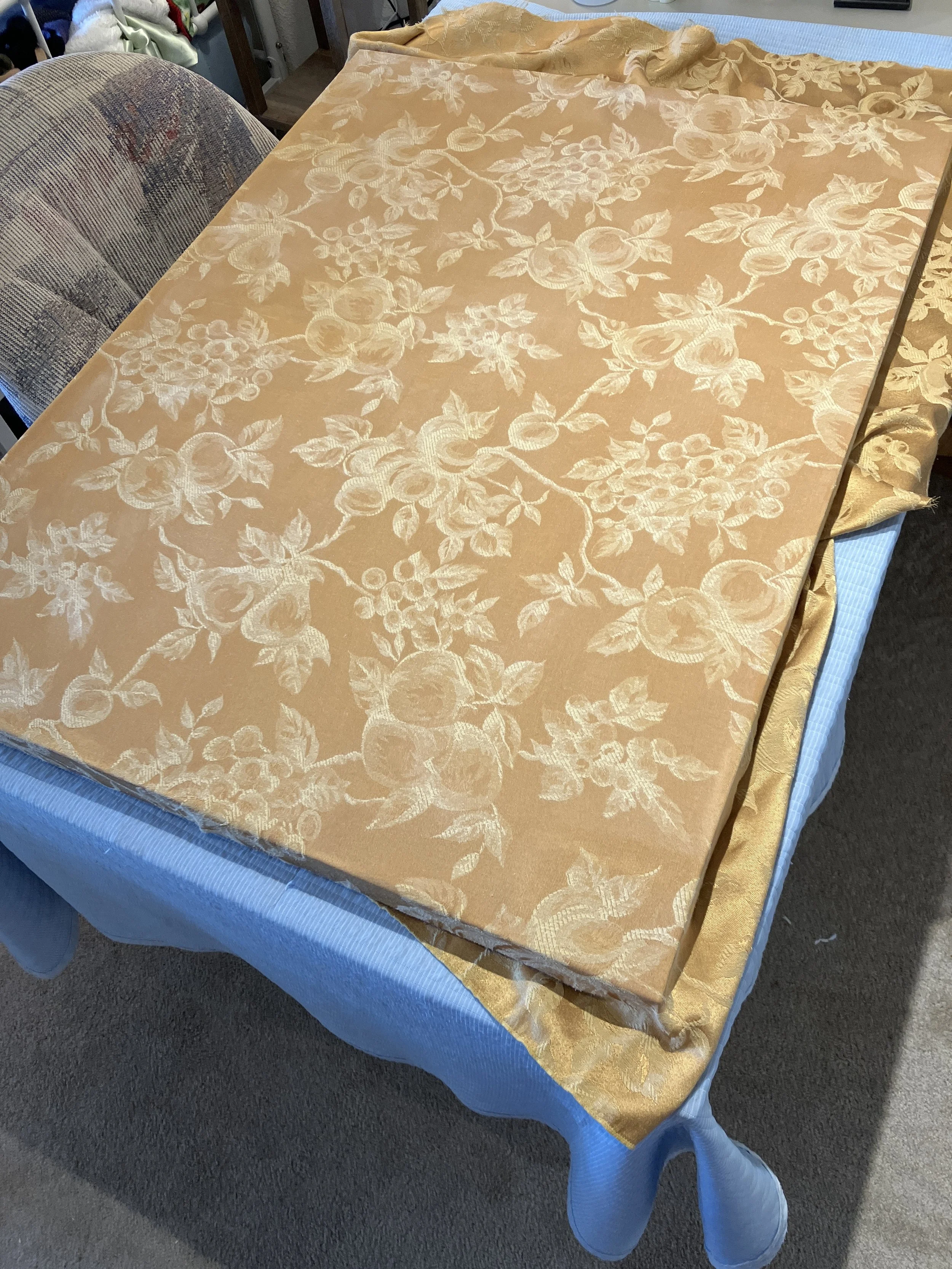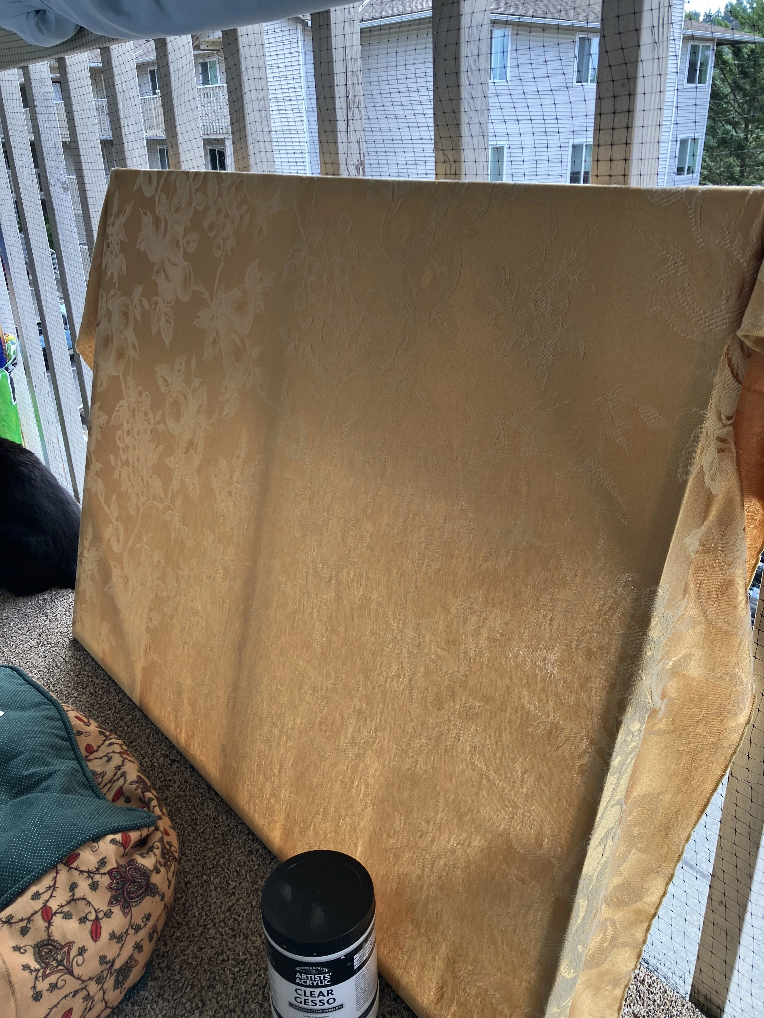 My process is very similar to preparing standard cotton canvas, depending on the fabric. Since this table cloth is quite sturdy, I decided to skip a Rabbit Skin Glue sizing layer I typically use on the back side as a first step to stabilize thin or delicate fabrics.